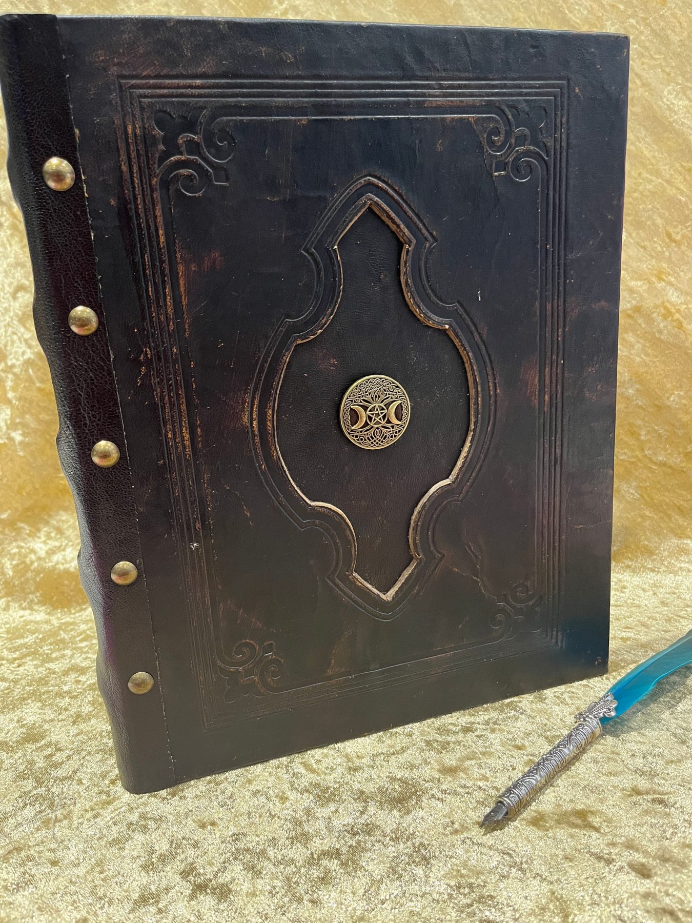 Leather Binder A4 Fantasy ‘Triple Godess’ Witchcraft, D&D, RPG, Prop, Tome Book Grimoire Blank