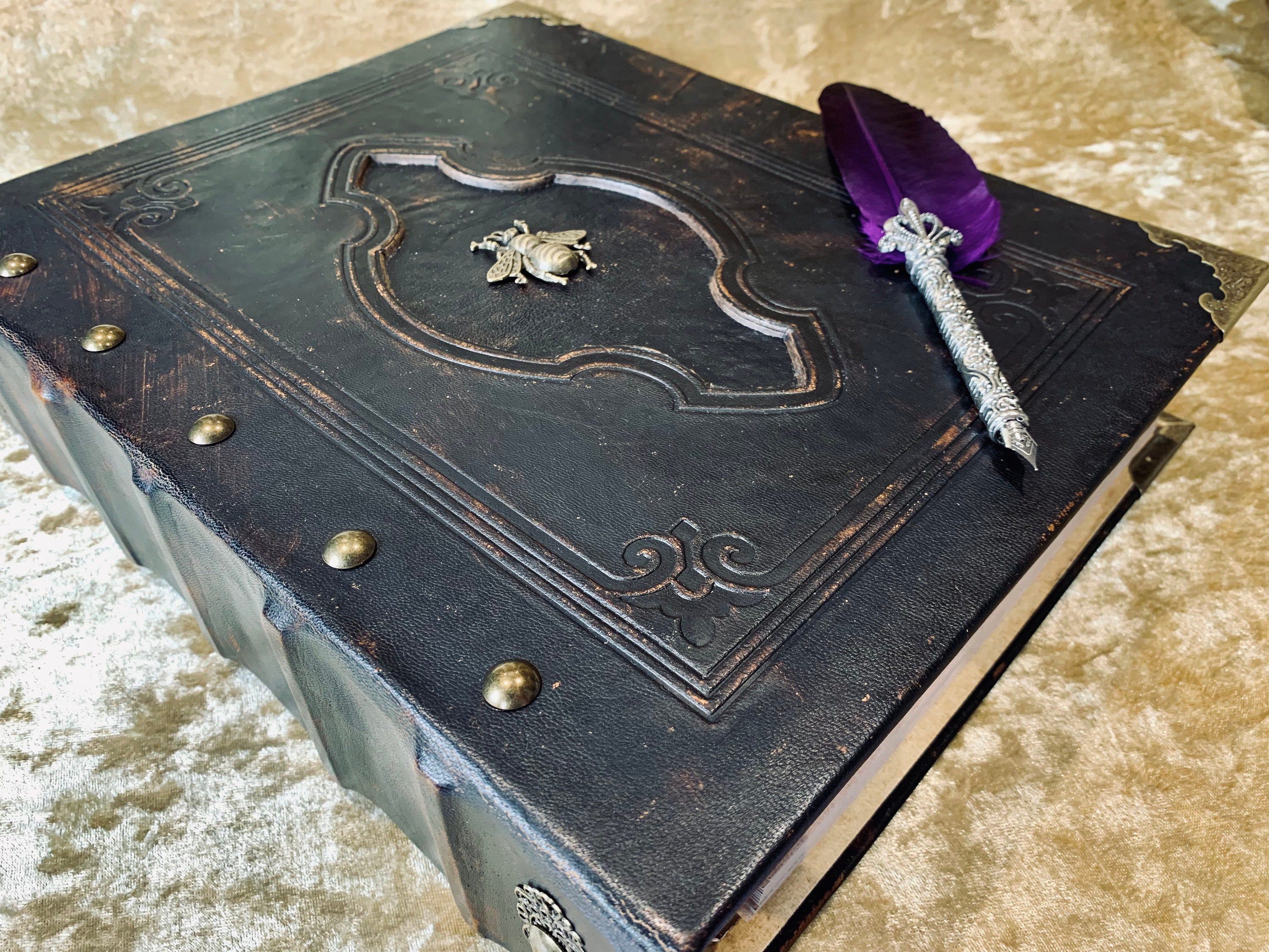 Leather Binder Book of Shadows A4 Fantasy ‘Bee’ Druid, Witchcraft, D&D, RPG, Prop, Tome Book Grimoire Pagan Witch Druid Book