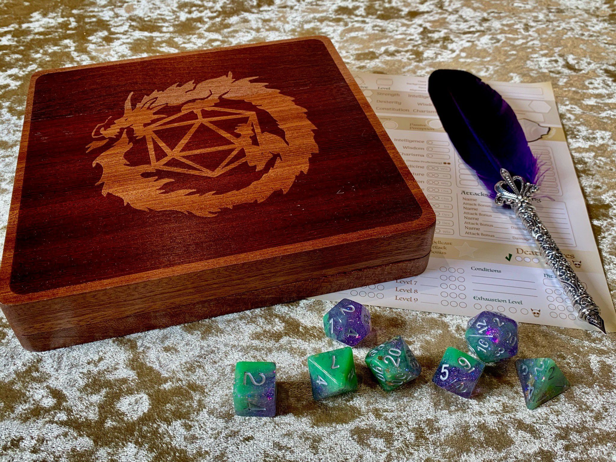 Dice Vault Dark Wood Magnetic Close Dice Box, Dice Tray and Holder for Dungeons and Dragons. Wooden DM Gift for DnD and Pathfinder.