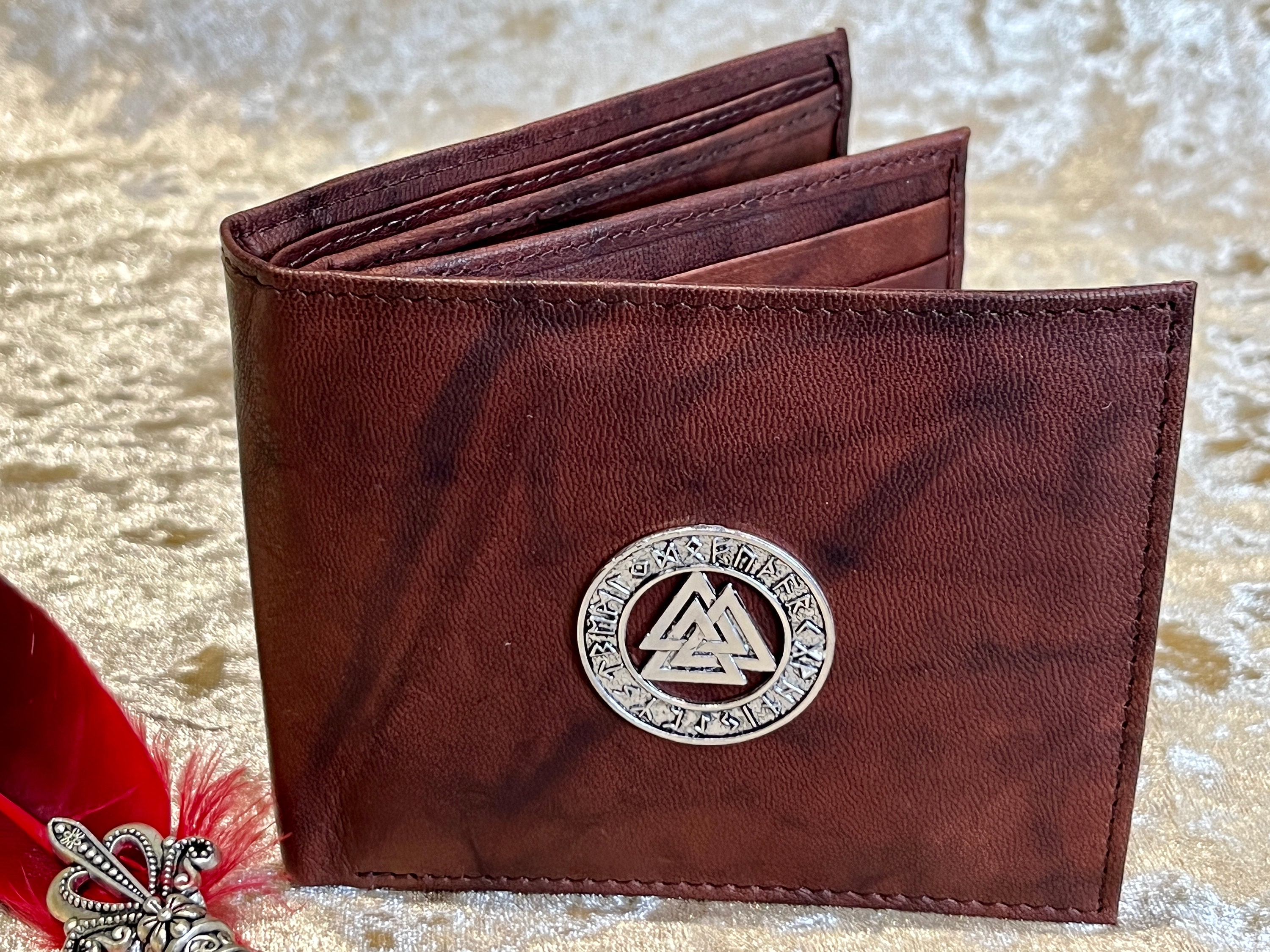 Vikings Valknut Mens Dark Brown Beautiful Nappa Leather Wallet With Coin Pouch DnD Gift for Dungeons and Dragons or Vikings gift