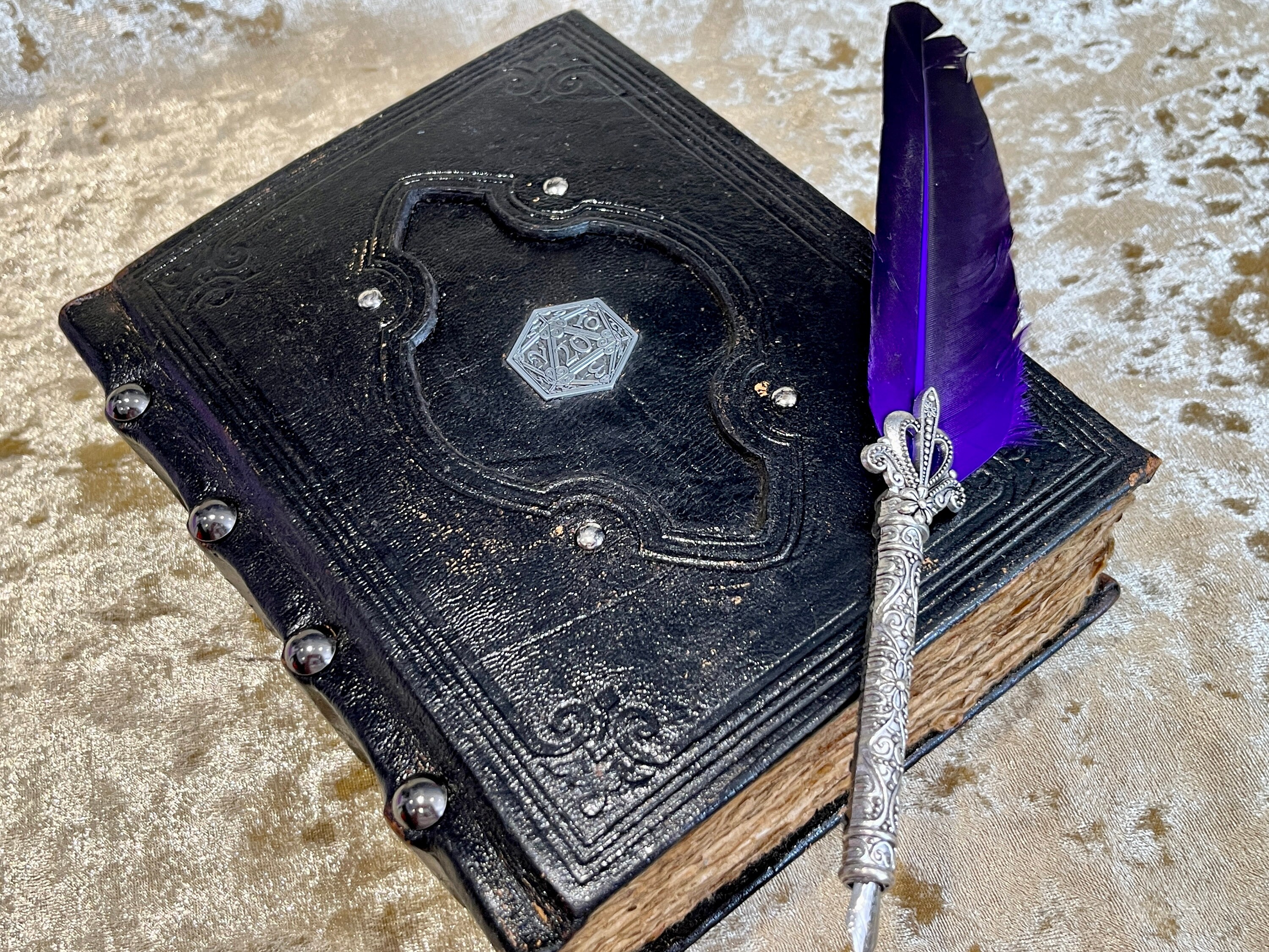 Description A5 Notebook Journal for Dungeons and Dragons Vegan Leather Matte Black D20 Diary for Dnd and Pathfinder Notes Beautiful D20 coin notebook. The D20 is solid metal giving a luxurious mystical look. Leather straps with chunky studs. A notebook ideal for keeping all your gaming notes and stories. Wonderful gift for Dungeon and Dragons. Perfect book for role play games such as Dungeons and Dragons and Pathfinder. Started making items for our own Dungeons and Dragons Game. We wanted to make beautiful useful items that people would love. We also wanted to keep our items affordable for players. Looking for a DnD or RPG related gift for him or her? A special gift for any occasion. Dungeons and Dragons groups love our notebooks for D&D games. Make it your quest to find the perfect book for yourself or give one as a gift to someone special. Role play game players of all ages love them. We draw inspiration from fantastic books and shows like the Walking Dead, Vikings and Game of Thrones. Youtube fans of Critical Role are the sort of people that love our book boxes and dice trays. All our handmade items are limited editions therefore great care has been taken to ensure each piece is well made. 17.5 cm x 13 cmx 2.2 cm Perfect for Dungeons and Dragons, Larping LARP. Coin Pouch or gift Bag for jewellery. We are also on Instagram as creativequestuk – https://www.instagram.com/creativequestuk/ Comes with a Character Sheet and Reference Card and Metallic Gold C5 Envelope. Perfect for Dungeons and Dragons gaming accessories Ships from London, United Kingdom Great Christmas gifts, birthday gifts, anniversary gifts, wedding gifts and other special occasions. Other products you might like – check the out here! Dungeons and Dragons Hand Crafted RPG Gifts, Healing Potions, DnD Gift Boxes, Dice Trays, Dice Jails and more First of all, introducing the designers, Claudia and Bobby. We started out making our own healing Potions, book boxes and leather dice bags to contain our dice addiction. We love playing our beloved game of Dungeons and Dragons. Once our dnd players saw these they wanted one too. We discovered the need for quirky accessories like dice jails, inspiration tokens and flight stands. All our players needed things like telescopic, magnetic flight stands but we couldn’t find them on the market. Welcome Dungeons and Dragons Players and DMs, Enjoy the AdventureDungeons and Dragons handmade RPG Gifts, Healing Potions, DnD Gift Box Designers Design is our passion along with Dungeons and Dragons so we continued creating these decorative dnd book boxes and dice bags. Why not be one of the first to own one of these magical items for your own gameplay. We can create books especially for your character. Choose one from our shop, all our items are hand crafted and have a rich waxed finish and as a result they are creating a bit of a buzz in the role play gaming community. Great Christmas gifts, birthday gifts, anniversary gifts, wedding gifts and other special occasions. NOTE: All Natural materials have flaws, please note that we do our best to avoid these but working with natural materials these are unavoidable.